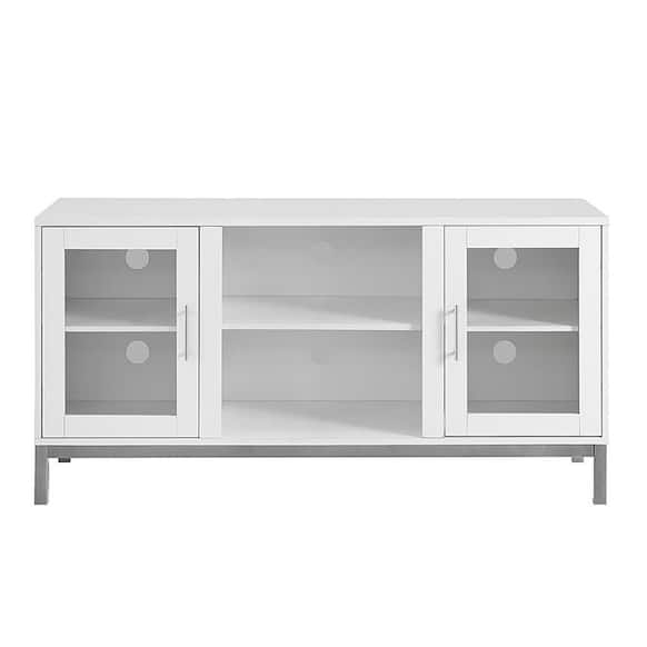 Ester Tv Cabinet White Shelves With White Metal Legs