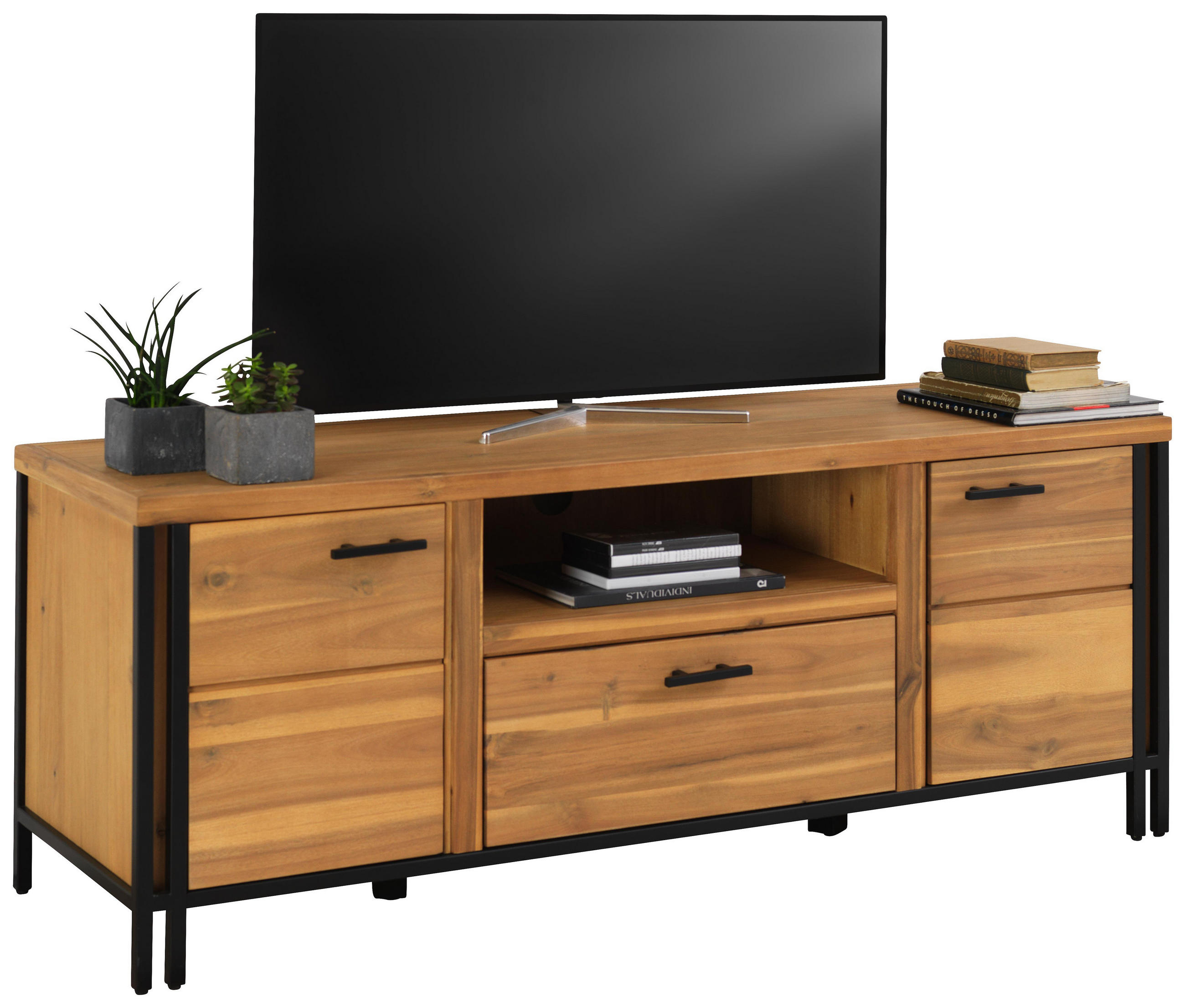 Tv Board Aus Akazie Massivholz Metall Schwarz